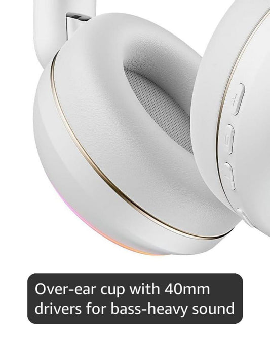 boAt Rockerz 480 W/RGB LEDs, 6 Light Modes, 40Mm Drivers, Beast Mode, 60Hrs Playback, Enx Tech, BT V5.3, Adaptive Fit & Easy Access Controls, Bluetooth Over Ear Headphones (White Sabre)