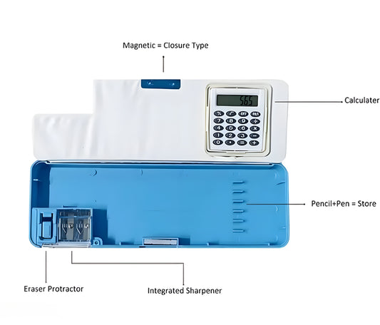 HOATZIN Multipurpose Magnetic Pencil Box/Geometry Box with Calculator & Dual Sharpener for School Big Size Cartoon Prints